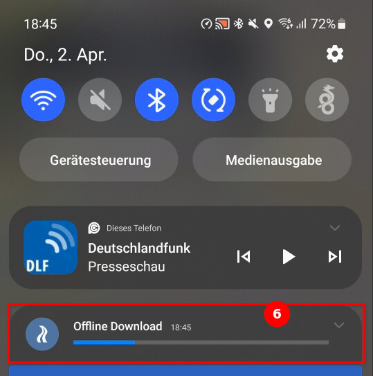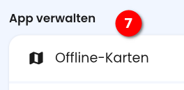 Wird die Navigation vorab bei verfügbarem Netz gestartet, so werden auch Offline-Karten entlang der Route heruntergeladen ((6) Korridorbreite ~ 1 km ), dann hat man auch Kartenmaterial an Board. Alternativ kann man natürlich auch explizit OfflineKarten der Region laden im OM (7).
