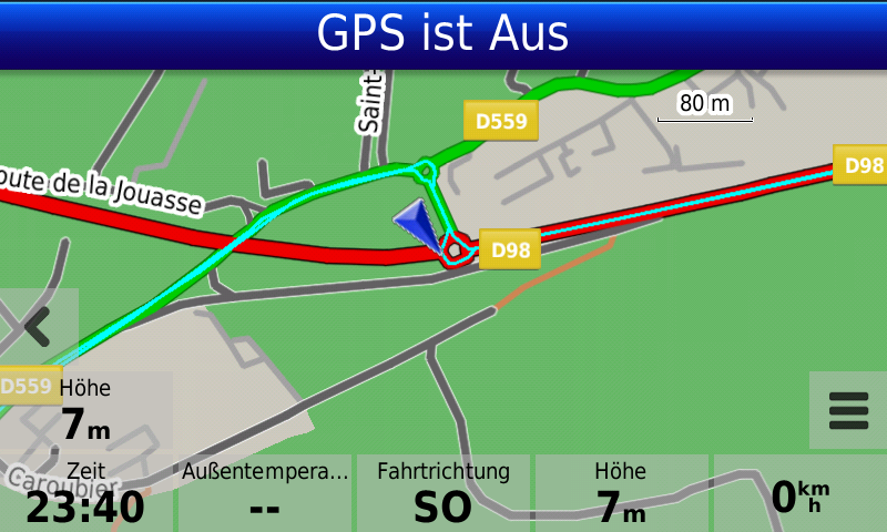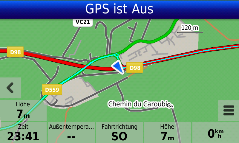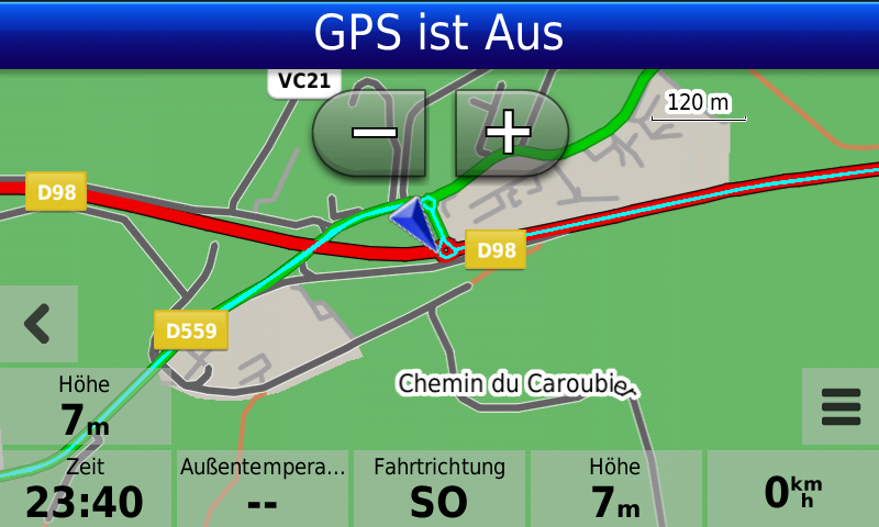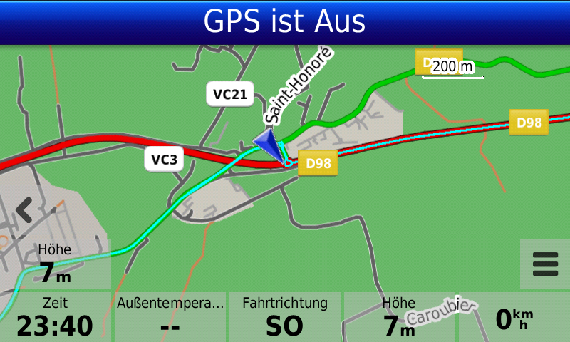 Remark: Usually also Garmin navis place the center of the arrow at current positions, but in the WWW you can download other vehicle icon files, so that the arrow tip is placed at current position (I also did this for my Garmin navis and I appreciate it). I will try to create screenshots to show the difference.