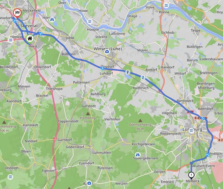 In der Erinnerung war es so , dass nach der Neuberechnung unerwarteter Weise zu Punkt 1 geroutet wurde. Danach tippte ich auf “Springe zu WP” und konnte kein Ziel auswählen, denn der Shapingpoint 1 zählte wohl nicht als POI. Aber eigentlich macht es ja keinen Unterschied, ob SP oder VP.