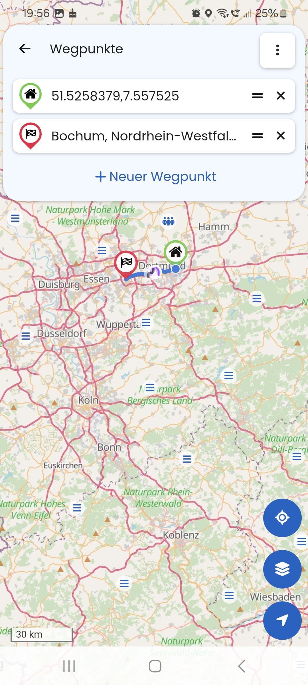 Klick auf neuen Wegpunkt (Button oder 3-Punkte Menü)